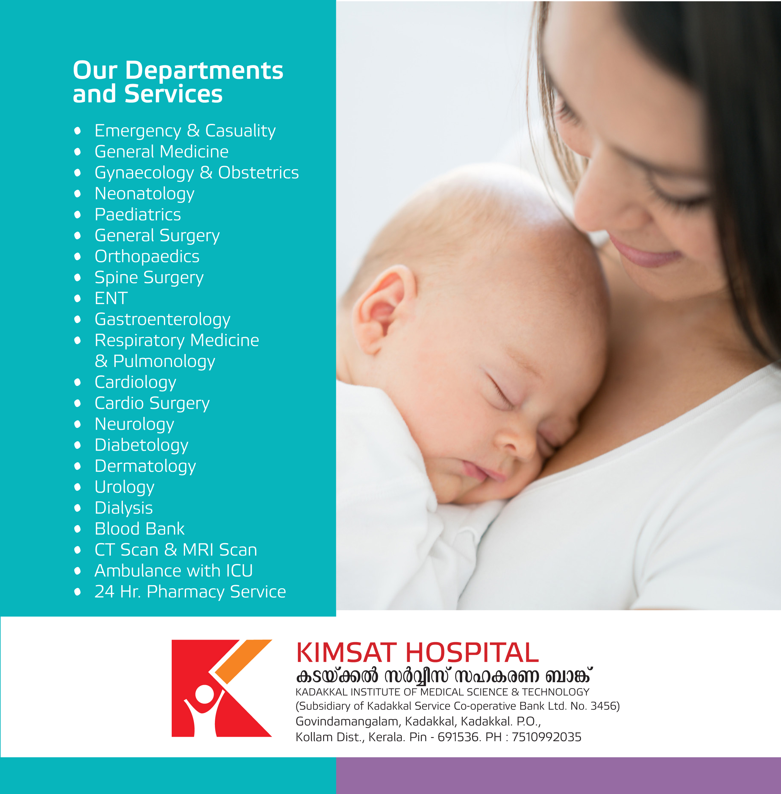 ബാങ്കിൻ്റെ അനുബന്ധ സ്ഥാപനമായ KIMSAT സഹകരണ ആശുപത്രിയുടെ നിർമ്മാണം 2020 ജനുവരിയിൽ ആരംഭിക്കുന്നു.ഒന്നാം ഘട്ടം ഉദ്ദേശം 35 കോടി രൂപചെലവിൽ നിർവഹിക്കുന്നു.പ്രധാനപ്പെട്ട എല്ലാ ഡിപ്പാർട്ട്മെൻറ്കളും തുടക്കത്തിൽ തന്നെ ഉണ്ടാകും.പൊതുജനങ്ങളിൽ നിന്നും സഹകാരികളിൽ നിന്നും ഷെയർ സംഭരിച്ചു തുടങ്ങി.ഒരു ഷെയറിനു 5000 രൂപ. ആവശ്യമായത്ര ഷെയറുകൾ വ്യക്തികൾക്കും സ്ഥാപനങ്ങൾക്കും നൽകുന്നു.വിശദാംശങ്ങൾ ബാങ്ക് HO ൽ പ്രവർത്തിക്കുന്ന KIMSAT അഡ്മിനിസ്ട്രേറ്റീവ് ഓഫീസിൽ നിന്നും ലഭ്യമാണ്.